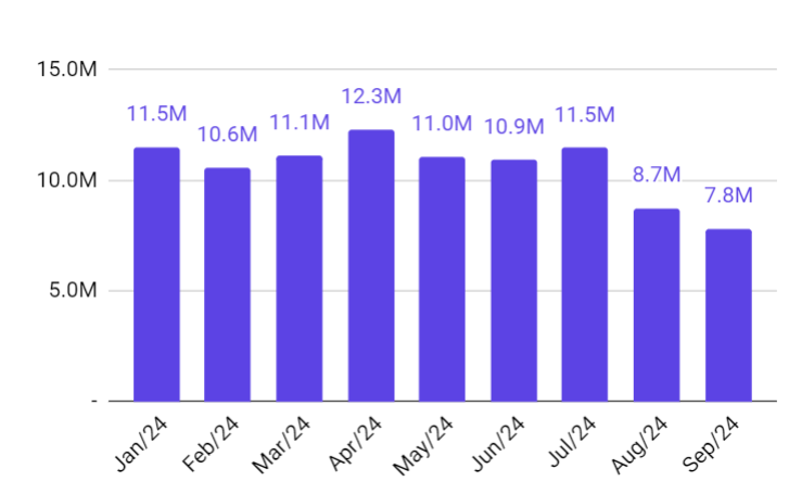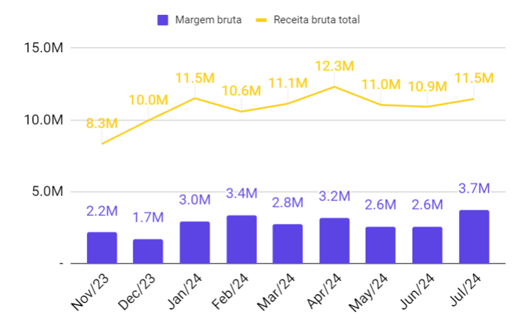 Em novembro de 2024, a receita bruta seguiu o ritmo de crescimento do mês, totalizando R$ 14,7 milhões.